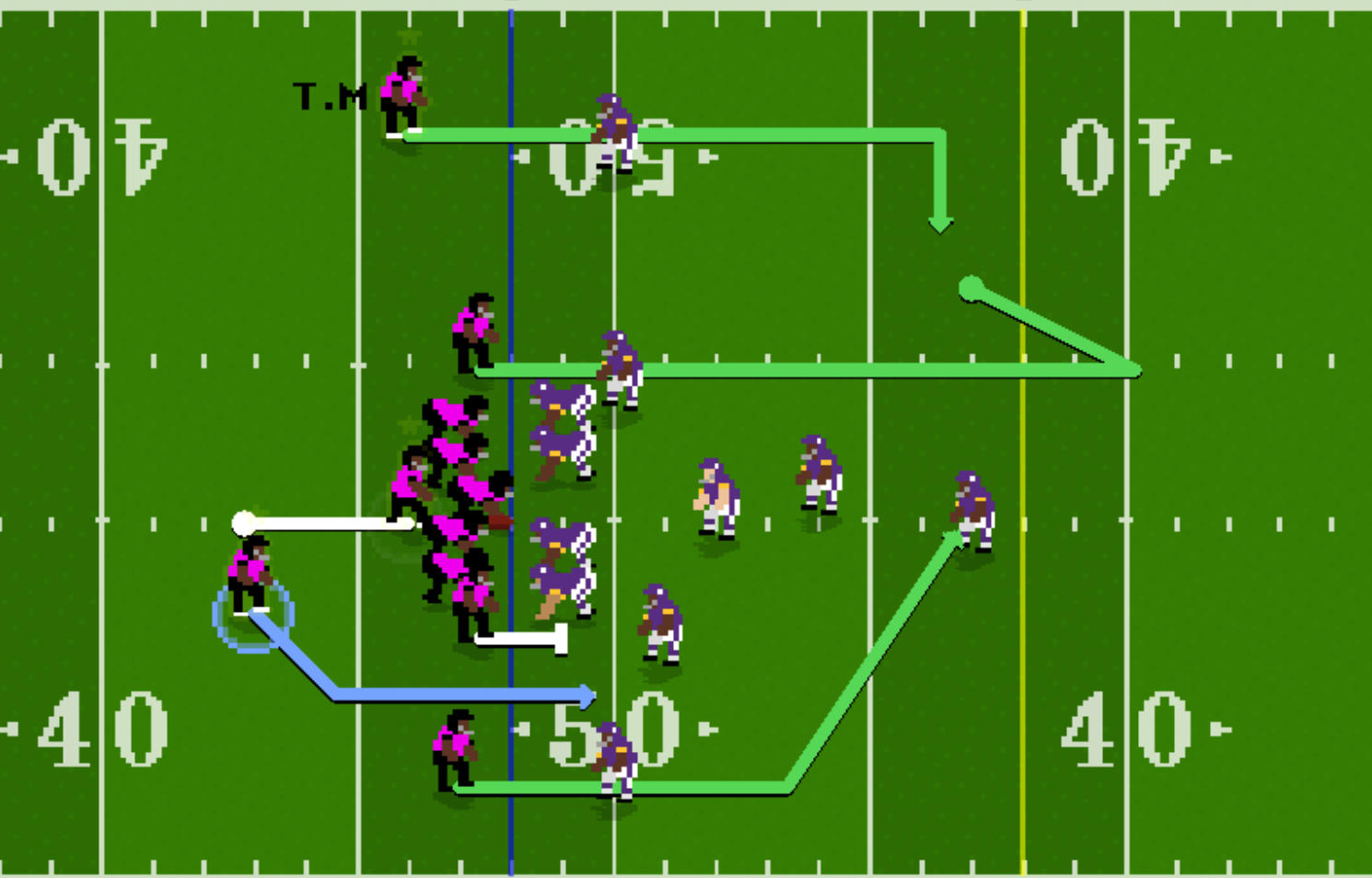 - Play for space: in Retro Tecmo Bowl, open grass is everything.